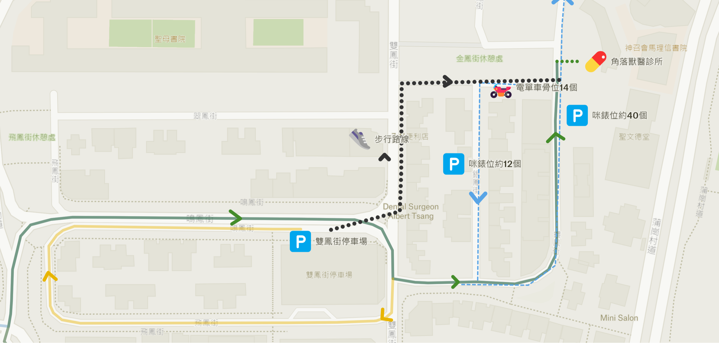 龍翔道東行至診所門口, 咪錶位指南